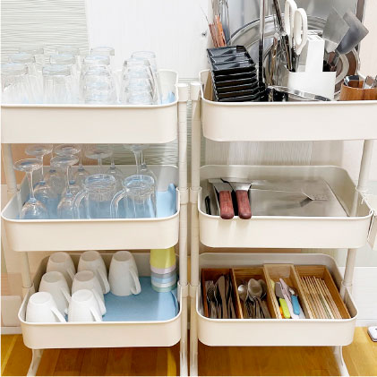 ●使用済のキッチン用品や食器は洗浄のうえ、作業台の上にまとめて置くようお願い致します。