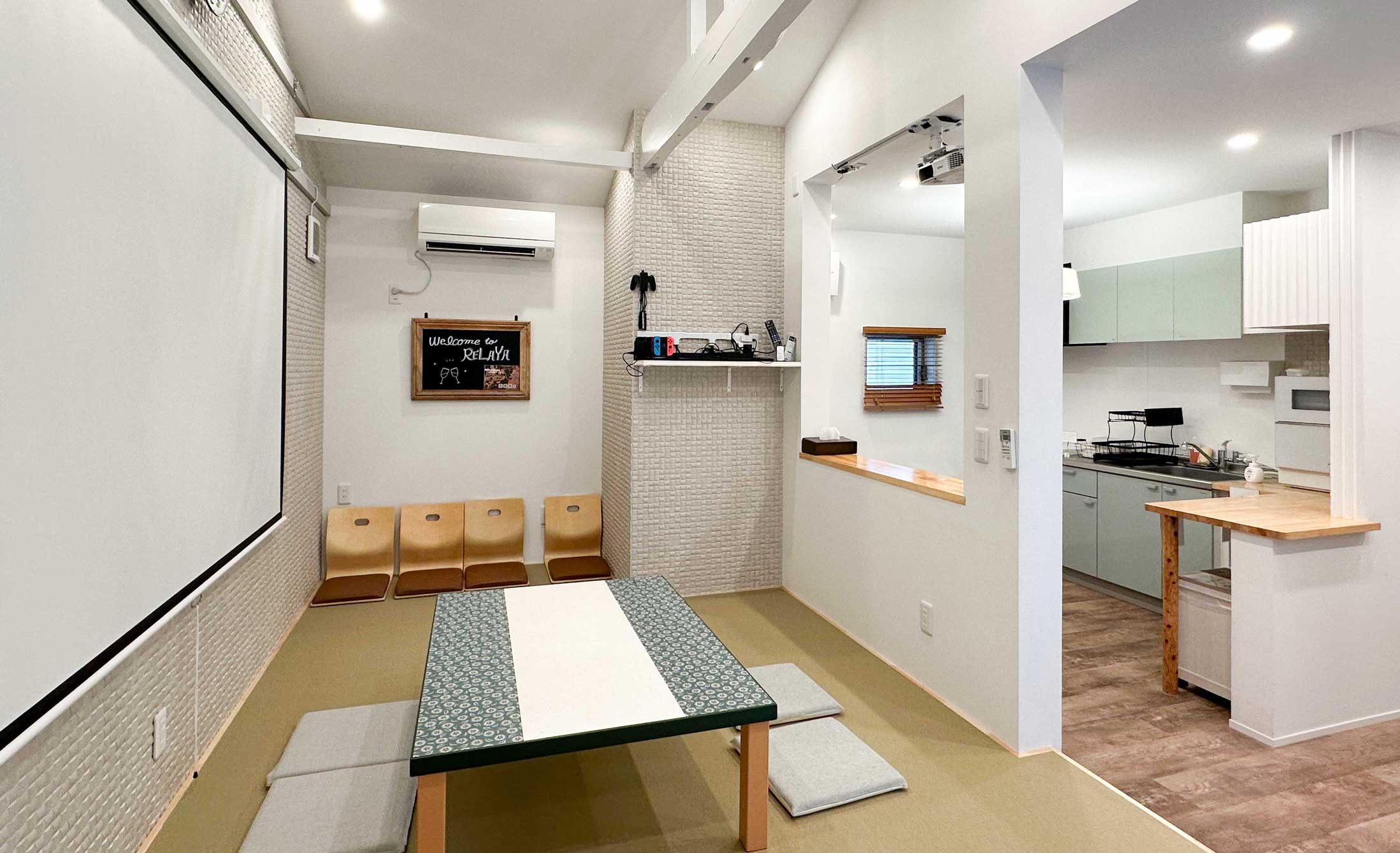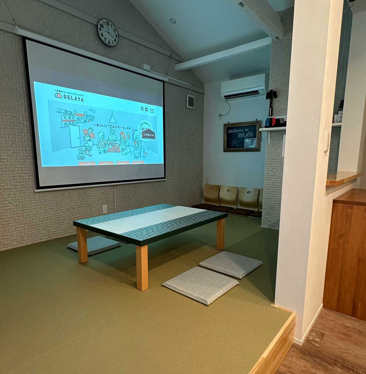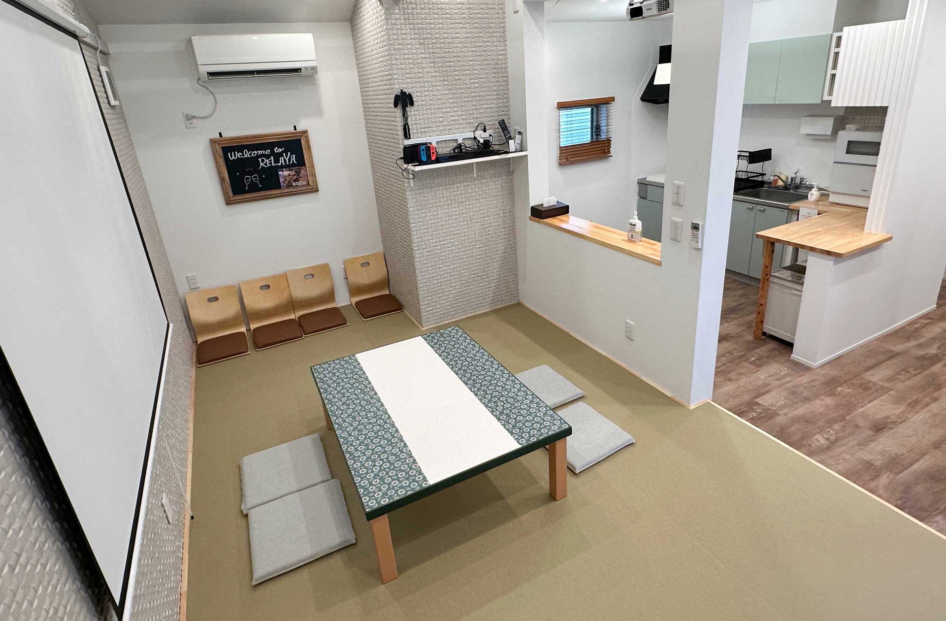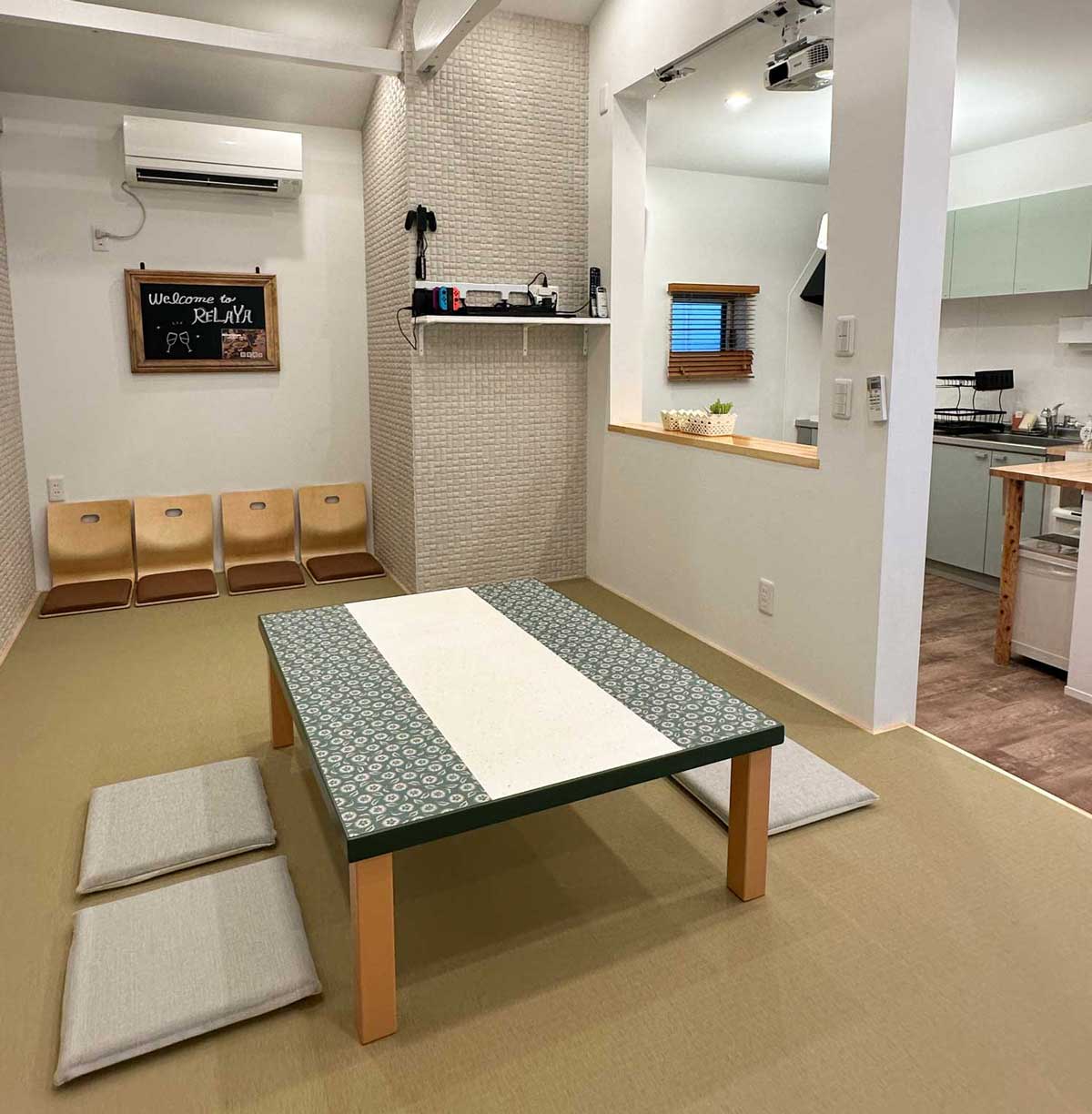 1階は小上がりになっているフロアにローテーブルで最大で8名ほどでくつろぐことができます。